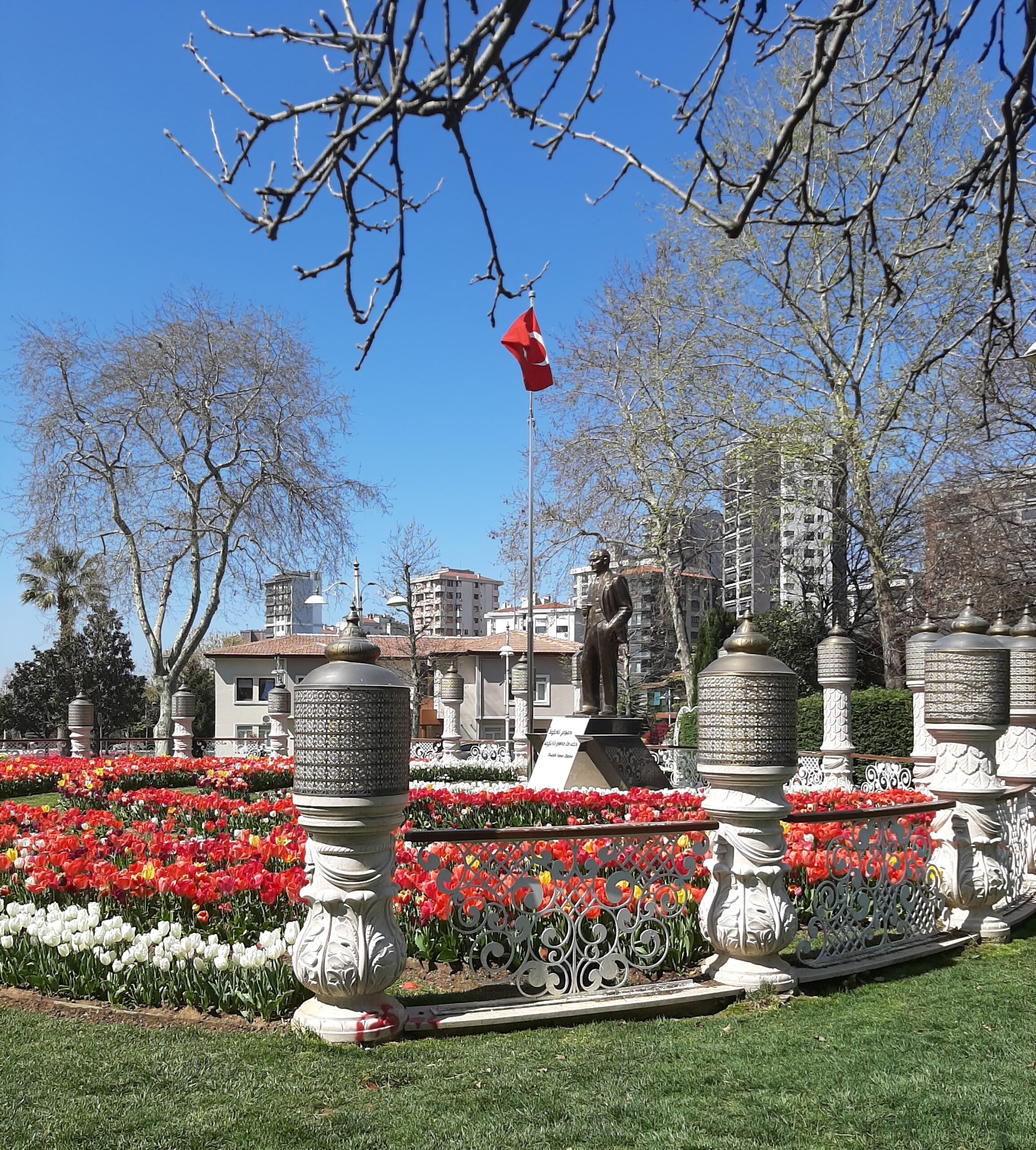 The delightful Goztepe 60 Year Park down near the water is at present a 30 minute walk from where I live. When the new metro opens up you’ll be able to catch a train from Istasyon Caddesi in Goztepe Istanbul directly to the park and arrive there in a few minutes. Thsi park is particularly delightful during the Istanbul tulip festival when the garden beds are full of glorious flowers in vibrant colours. Year round the Baroque style topiary hedge garden formed from boxwood pruned in different symmetrical forms, a flower garden mainly planted with roses, a kids’ playground and almost 1000 trees throughout the grounds make for a very attractive setting.