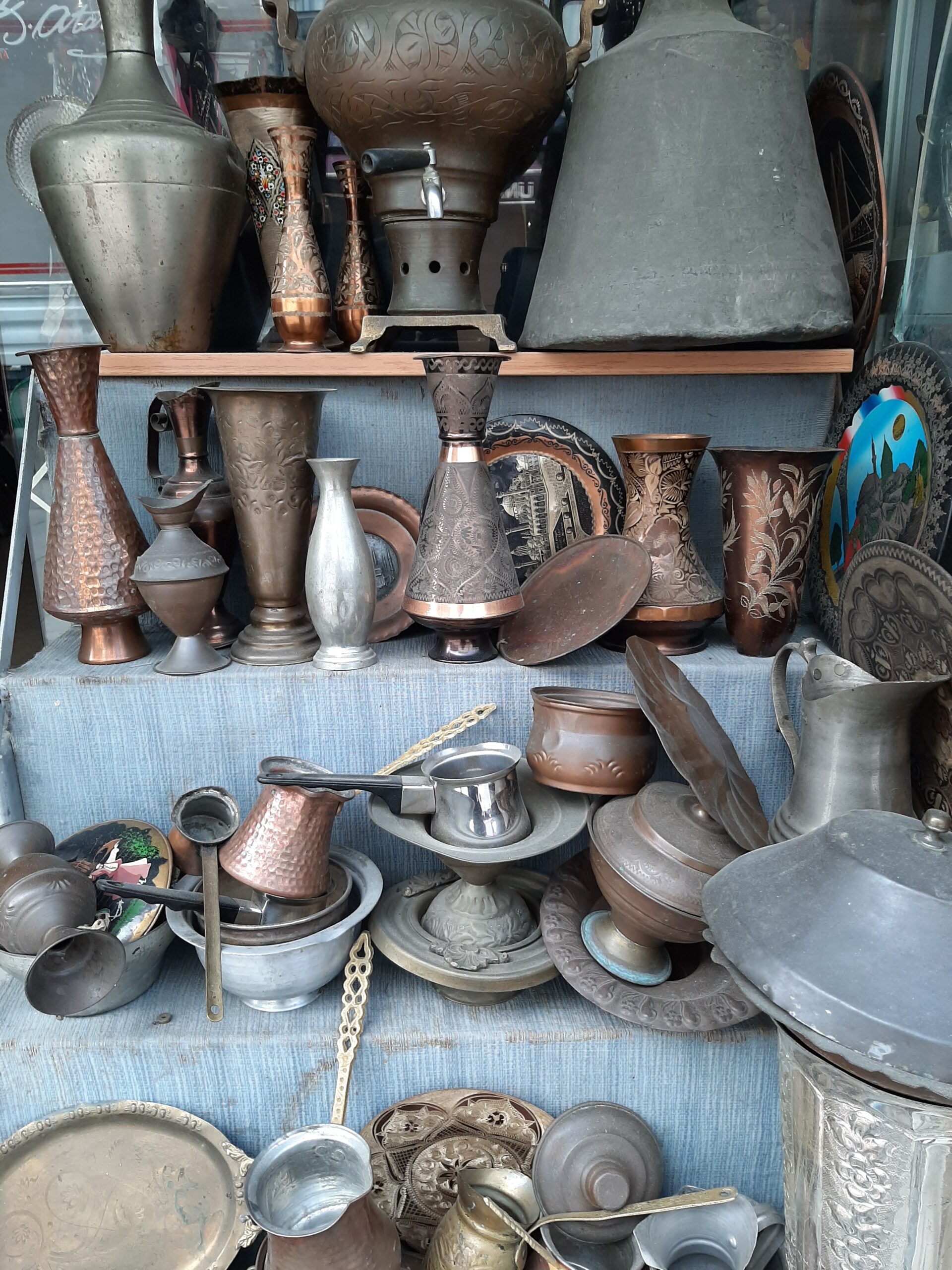 Maybe this is because a secondary meaning of tellal is ‘broker’. The proprietors of the shops in Kadikoy Antique Street act as middlemen for the eskici, the sellers of old wares who roam the surrounding neighbourhoods, buying items no longer needed by their owners. After acquiring them for a few lira they bring them here in search of a quick profit. Once inside the doors of the antique stores these unwanted belongings are reinvented and offered for sale as much sought after and cherished treasures.